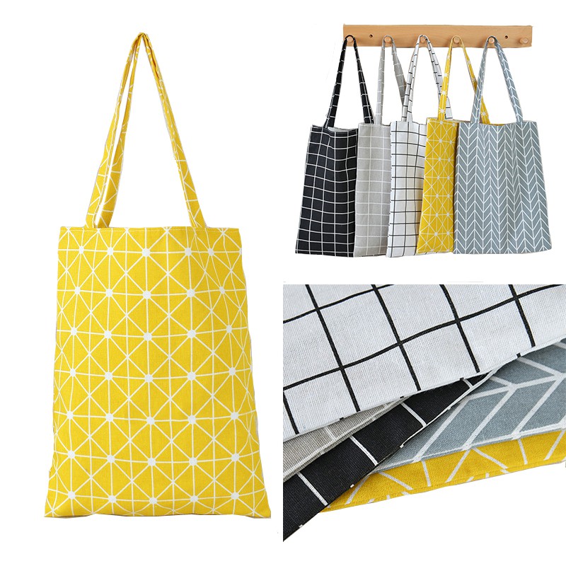 Tas Bahu Tote Eco Bahan Linen Motif Kotak Kotak Tanpa . Sumber Gambar : shopee.co.id